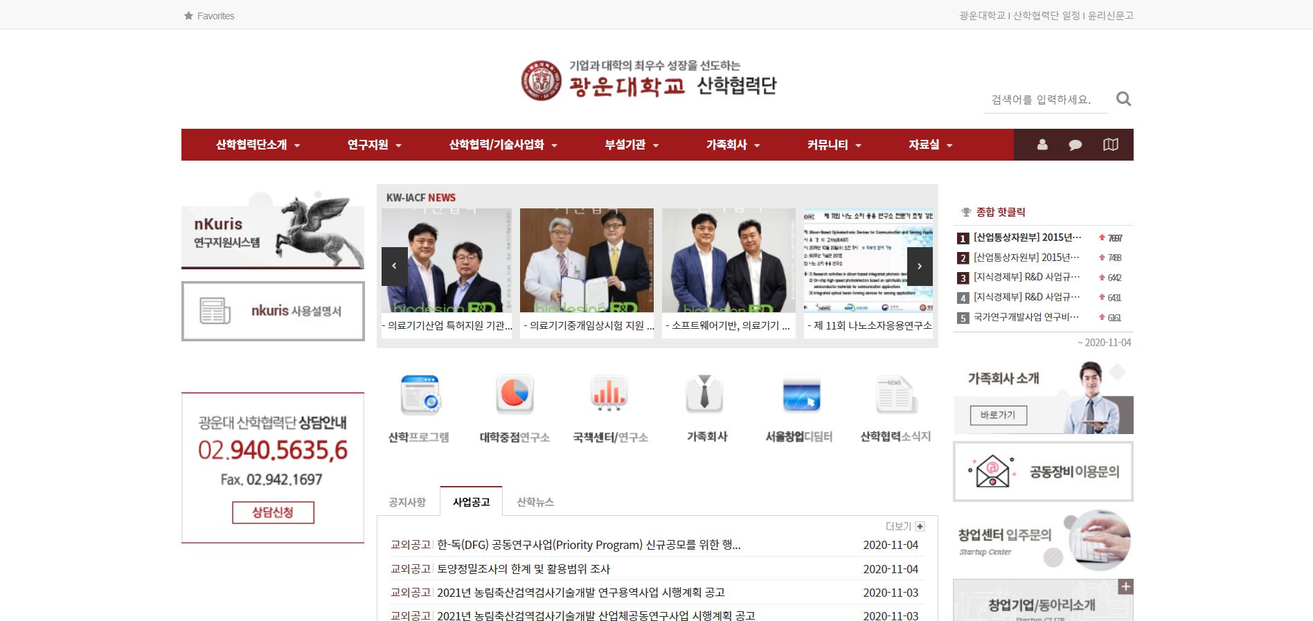 광운대학교 메인페이지