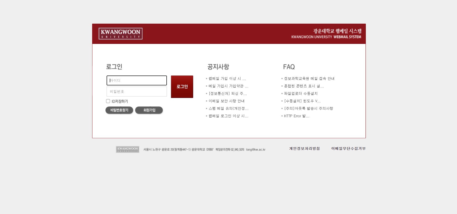 광운대학교 자체 웹메일 시스템입니다.